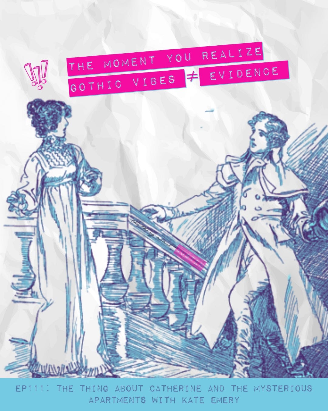 Detective Catherine is on the case. The crime? Murder most foul. If only she can find some evidence. This episode we’re joined by Kate Emery of Austen Therapy to discuss Catherine’s investigation, why we like to scare ourselves, and why Henry Tilney is her ultimate Austen hero.