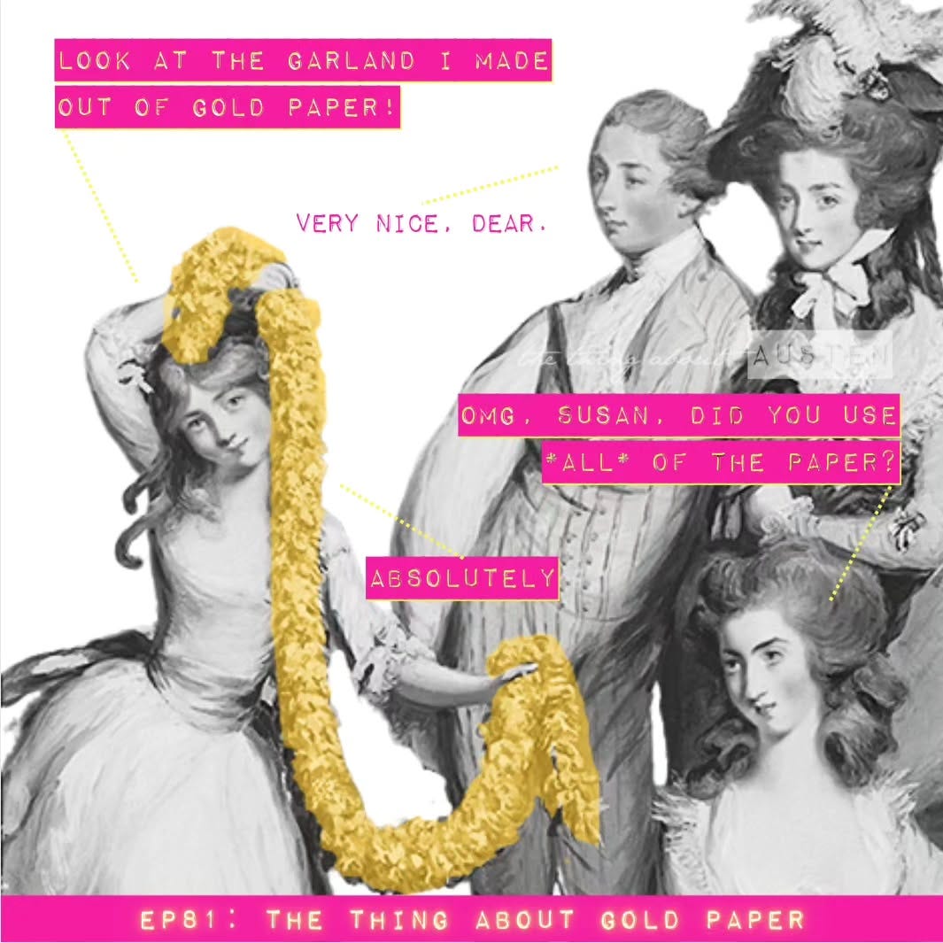 This episode we're closing out the year with a visit to the homey confines of Uppercross Hall. There's a large group of children assembled, and festive merriment is afoot. Break out your favorite scissors and your glue of choice — it's time to get crafty with gold paper.