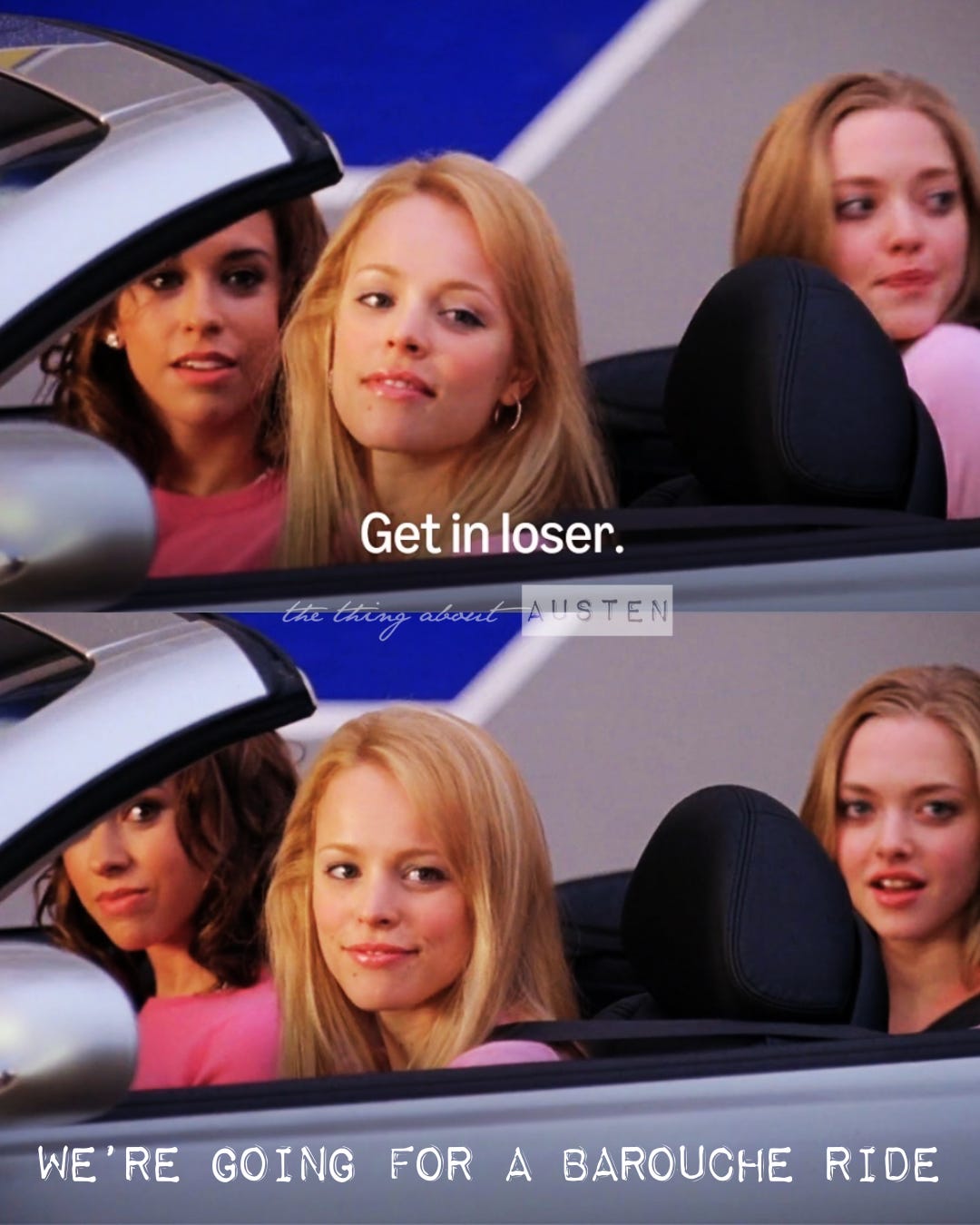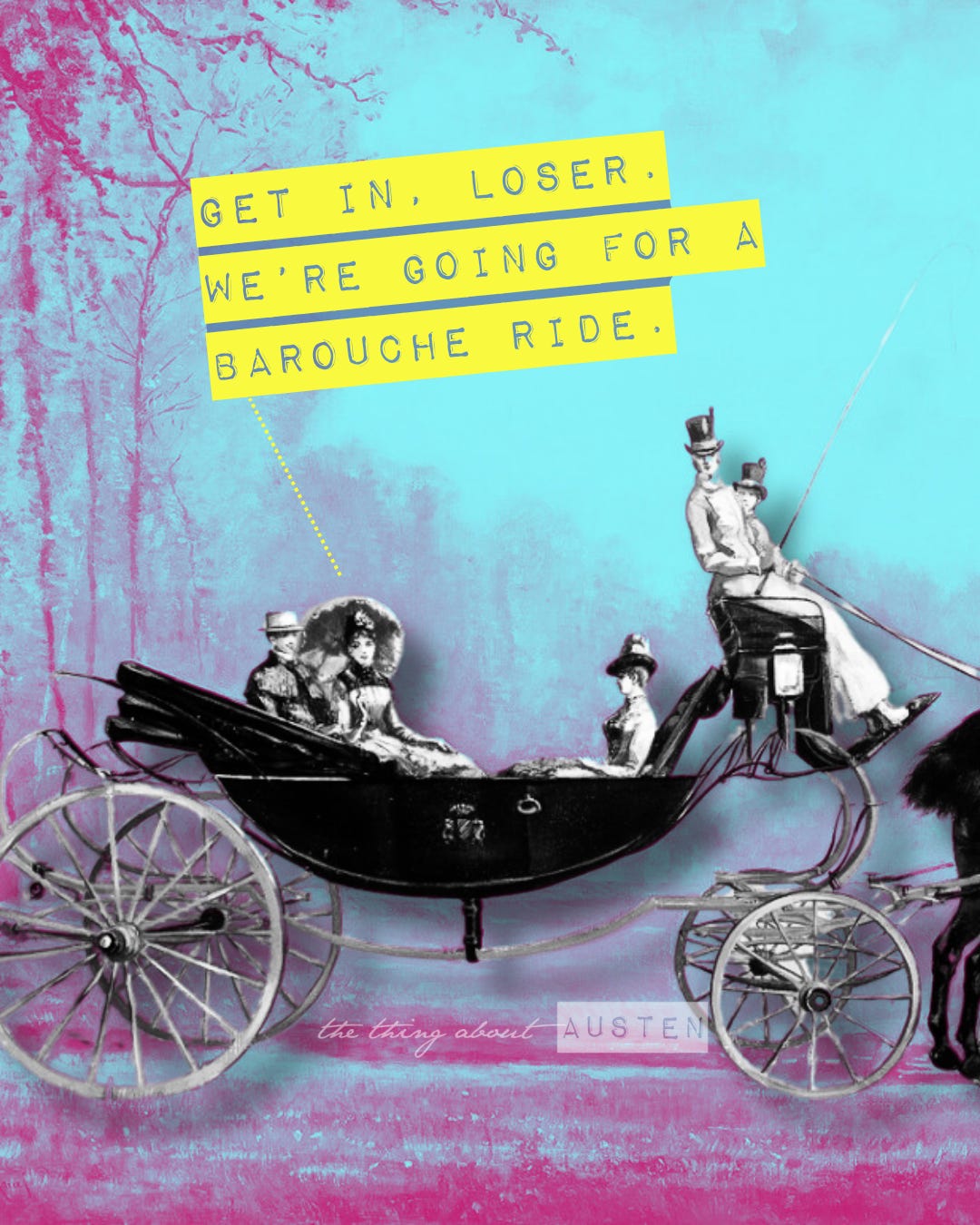This scene from Mean Girls feels especially appropriate since the barouche was the convertible of its time. Owning a barouche meant that you had the disposable income to spend on an extra carriage that could only be reasonably used on a limited, seasonal basis. It also meant that you had the leisure time to cruise the countryside in your elegant conveyance in order to “explore the different beauties extremely well”1 or to see and be seen in London’s most fashionable neighborhoods.